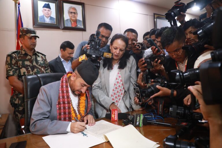 काठमाडौँ, । सञ्चार तथा सूचना प्रविधिमन्त्री जगदिश खरेलले पदभार ग्रहण गरेका छन् । आज राष्ट्रपति कार्यालयमा पद तथा गोपनीयताको शपथ ग्रहण लगत्तै सिंहदरबारस्थित कार्यालय पुगी उनले पदभार ग्रहण गरेका हुन् ।