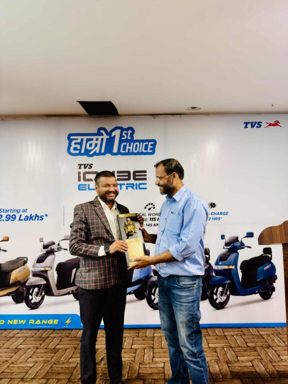 जगदम्बा मोटर्सले ललितपुरमा रहेको युनिराइड अटोलाई टिभीएस आइक्युबको सार्वधिक बिक्रीको अवार्ड प्रदान गरेको छ ।