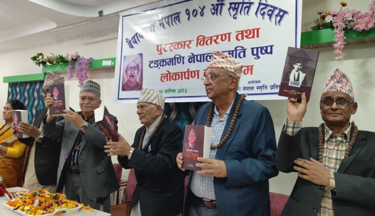 स्मृतिग्रन्थ समीक्षक प्राध्यापक बद्री विशाल भट्टराईले भोजपुरको टेम्के मैयुङमा जन्मिएका नेपाल ९१९९७–२०८०० भाषाप्रेमी प्राज्ञिक व्यक्तित्वका रुपमा रहेकाबारे चर्चा गरे । प्रतिष्ठानका अध्यक्ष नेपालले ग्रन्थमा लामो समय प्राध्यापन र सामाजिक सेवाका क्षेत्रमा क्रियाशील स्वर्गीय नेपालको अनवरत क्रियाशीलता, शालीन जीवनशैली र वाङ्मय क्षेत्रमा गरेका कार्यका विविध पाटालाई उजागर गर्ने सामग्री समावेश गरिएको बताए । कार्यक्रममा विद्यादेवी दाहाल पुरस्कार भोजपुका दुई छात्रा योजना फुयाल र विनिता विष्टलाई अर्पण गरिएको छ ।