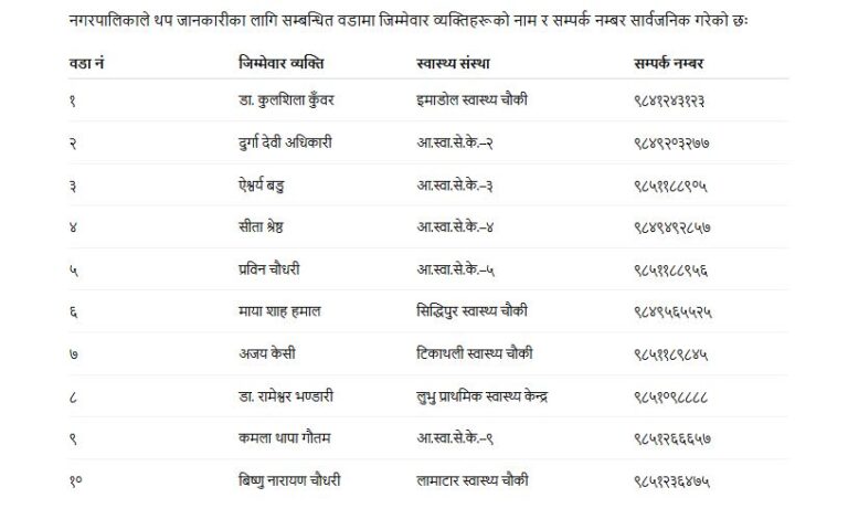 देशव्यापी रुपमा सञ्चालन हुने राष्ट्रिय भिटामिन ‘ए’ तथा जुकाको औषधि खुवाउने कार्यक्रम अन्तर्गत नगरपालिकाको स्वास्थ्य शाखाले मंगलबार जारी गरेको सूचना अनुसार ६ महिना देखिका ५ वर्षसम्मका बालबालिकालाई भिटामिन ‘ए’ क्याप्सुल र १ वर्ष देखिका ५ वर्षसम्मका बालबालिकालाई जुकाको औषधि (अल्बेन्डाजोल) खुवाइने भएको हो ।