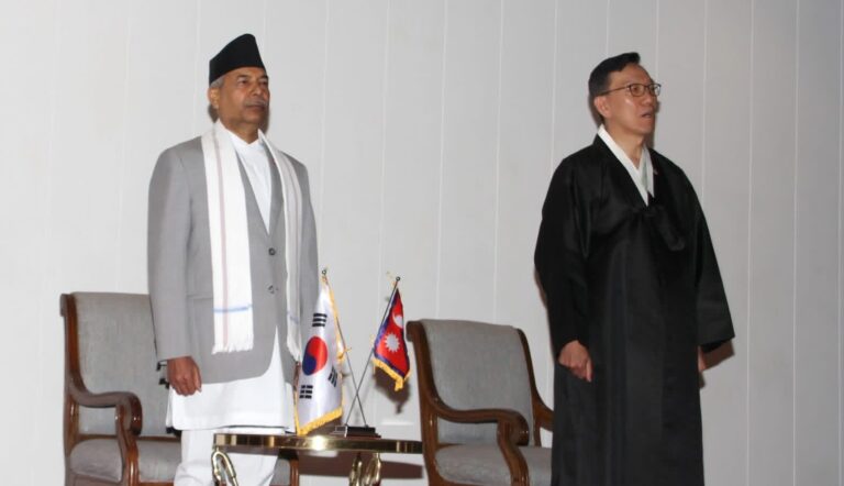 काठमाडौँ, । उपराष्ट्रपति रामसहायप्रसाद यादव गणतन्त्र कोरियाको राष्ट्रिय दिवसका अवसरमा बुधबार साँझ यहाँ आयोजित स्वागत समारोहमा सहभागी भए ।
