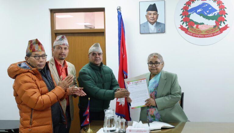 काठमाडौँ, । प्रधानमन्त्री सुशीला कार्कीसमक्ष जय मातृभूमि पार्टीको एक प्रतिनिधिमण्डलले भेट गरी आज ज्ञापनपत्र बुझाएको छ ।