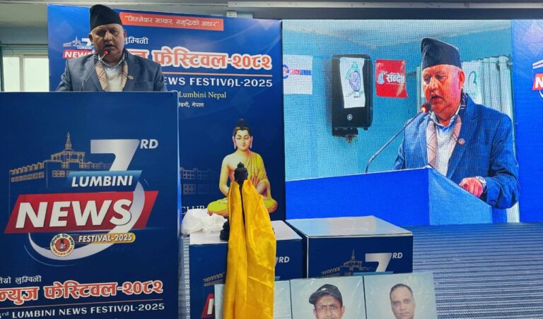 लुम्बिनी प्रेस क्लबद्वारा आयोजित तेस्रो लुम्बिनी ‘न्यूज फेस्टिभल’को आज लुम्बिनीमा उद्घाटन गर्दै मुख्यमन्त्री आचार्यले महोत्सवले पत्रकारिताको भूमिकालाई अझ प्रभावकारी बनाउने विश्वास व्यक्त गरे ।