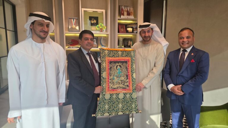 संयुक्त अरब इमिरेट्स (यूएई) का लागि नेपालका राजदूत तेजबहादुर क्षेत्रीको उपस्थितिमा आज दुबईमा भएको भेटवार्तामा दुवै पक्षले आगामी दिनमा नेपाल–यूएई आर्थिक सहकार्यलाई थप प्रभावकारी बनाउँदै पारस्परिक लाभका साझेदारीहरू अघि बढाउने प्रतिबद्धता व्यक्त गरेका नेपाल उद्योग वाणिज्य महासङ्घले जनाएको छ ।
