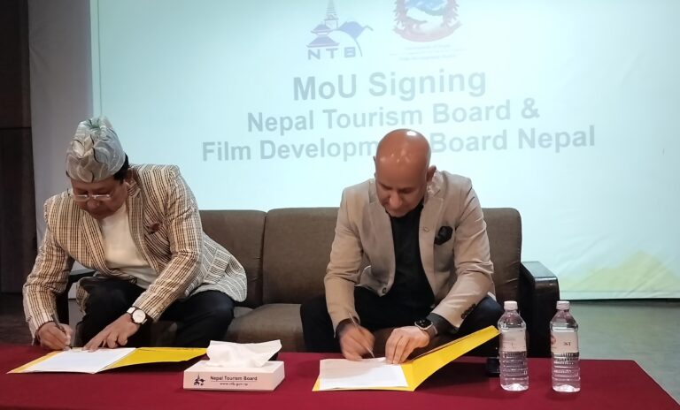 काठमाडौँ, । चलचित्रमार्फत नेपालको पर्यटन प्रवद्र्धन गर्ने उद्देश्यका साथ नेपाल पर्यटन बोर्ड ९एनटीबी) र चलचित्र विकास बोर्ड ९एफडीबी०बीच चार बुँदे समझदारीपत्र ९एमओयू० मा हस्ताक्षर भएको छ ।