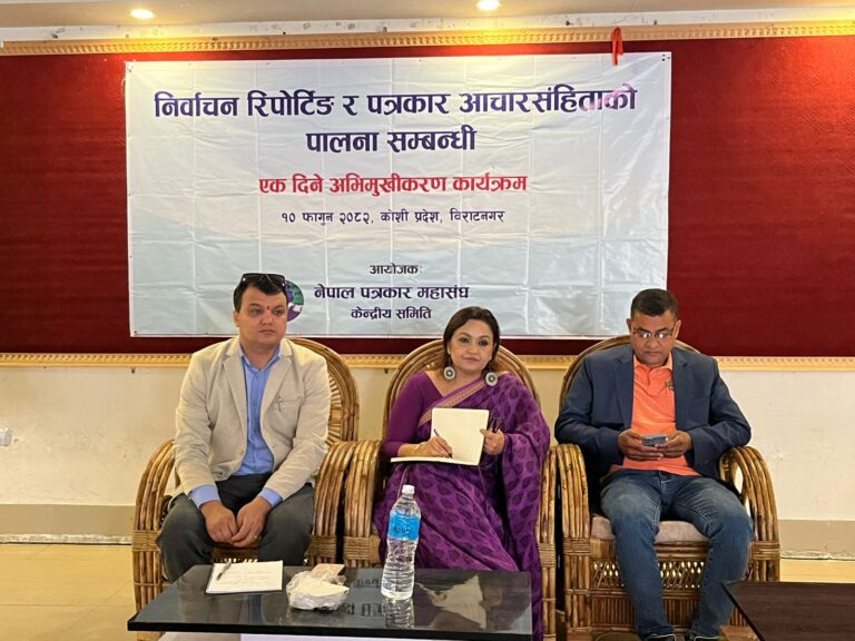 नेपाल पत्रकार महासंघ केन्द्रीय समितिको आयोजनामा ‘निर्वाचन रिपोर्टिङ तथा पत्रकार आचारसंहिता पालनासम्बन्धी’ अभिमुखीकरण कार्यक्रम सम्पन्न भएको हो।