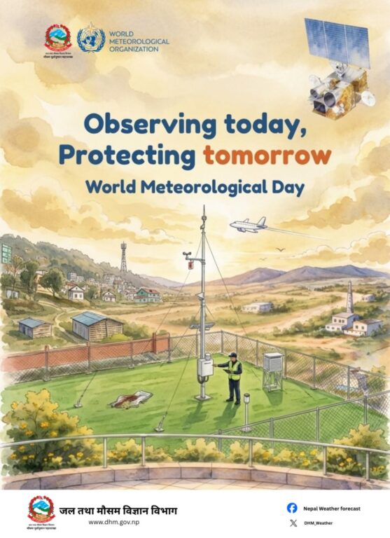 काठमाडौँ, । ‘आजको अवलोकन, भोलिको सुरक्षा’ भन्ने नाराका साथ नेपालमा पनि बिबिध कार्यक्रम आयोजना गरी विश्व जल तथा मौसम दिवस मनाइँदै छ । सन् १९५० मा विश्व मौसम विज्ञान सङ्गठनको स्थापना भएको दिनको सम्झनामा सन् १९६१ देखि यो दिवस मनाउन थालिएको हो ।