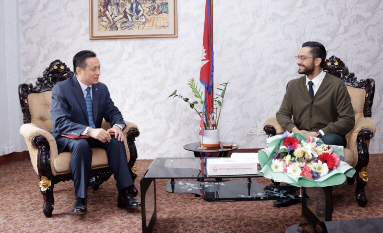 सिंहदरबारस्थित मन्त्रालयमा सोमबार भएको भेटमा नेपालको शिक्षा, विज्ञान तथा प्रविधि र खेलकुदसहितको क्षेत्रमा चीन सरकारको सहयोग र सहकार्यबारे कुराकानी भएको थियो ।