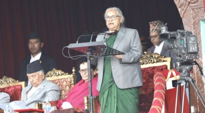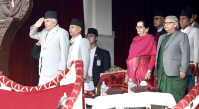 काठमाडौँ, । राष्ट्रपति रामचन्द्र पौडेल राष्ट्रिय प्रजातन्त्र दिवस २०८२ को अवसरमा आज सैनिक मञ्च टुडिखेलमा