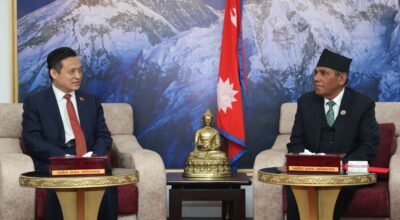 काठमाडौँ, । राष्ट्रिय सभाका अध्यक्ष नारायणप्रसाद दाहालसँग नेपालका लागि नवनियुक्त चिनियाँ राजदूत चाङ माओमिङले शिष्टाचार