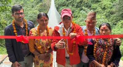 म्याग्दी, । मङ्गला गाउँपालिका–४ को न्यूखोलामा निर्माण भएको झोलुङ्गे पुलबाट करिब दुई सय परिवार लाभान्वित