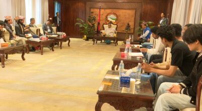 काठमडौँ, । राष्ट्रपति रामचन्द्र पौडेलले प्रथम महिला सविता पौडेलका साथ आज गाई पूजा गर्नुभएको छ । कात्तिक कृष्णऔँसी अर्थात् गाईतिहारका दिन देवी लक्ष्मीको प्रतीकस्वरूप गाईको पूजा गर्ने गरिन्छ । राष्ट्रपति पौडेलले शीतल निवासमा विधिपूर्वक गाईको पूजा गरी गाईलाई खानेकुरा खान दिनुभएको राष्ट्रपतिको सचिवालयले जनाएको छ ।