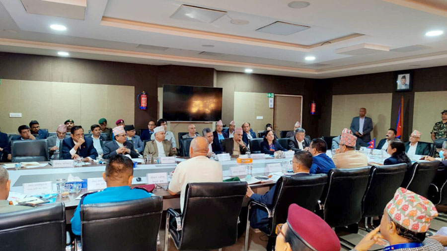 काठमाडौं, – अविरल वर्षाले भएको जनधनको क्षतिबारे छलफल गर्न विपद व्यवस्थापन कार्यकारिणी समितिको बैठक सुरु भएको छ । गृहमन्त्री रमेश लेखकको अध्यक्षतामा राष्ट्रिय विपद् न्यूनीकरण तथा व्यवस्थापन प्राधिकरणको कार्यालय सिंहदरबारमा बैठक जारी छ । असोज ११ र १२ गते बाढी, पहिरो र डुबानका कारण भएको क्षतिबारे छलफल गरी खोज, उद्धार, राहत र पुनर्निर्माणबारे निर्णय गर्न…