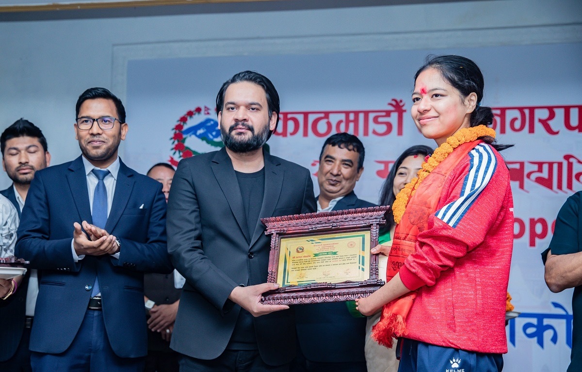 काठमाडौँ, – काठमाडौँ महानगरपालिकाले पेरिस पारालिम्पिक, २०२४ मा कास्य पदक प्राप्त गर्ने पारा तेक्वान्दो खेलाडी पलेशा गोवर्धनलाई रु पाँच लाख नगदसहित सम्मान गरेको छ । महानगरपालिका कार्यालय काठमाडौँ प्लाजामा आज आयोजना गरिएको कार्यक्रममा महानगर प्रमुख बालेन्द्र शाह (बालेन)ले सम्मानपत्र तथा उपप्रमुख सुनिता डङ्गोलले पलेशालाई रु पाँच लाखको चेक हस्तान्तरण गरे । सम्मान कार्यक्रममा महानगरपालिकाका प्रवक्ता…