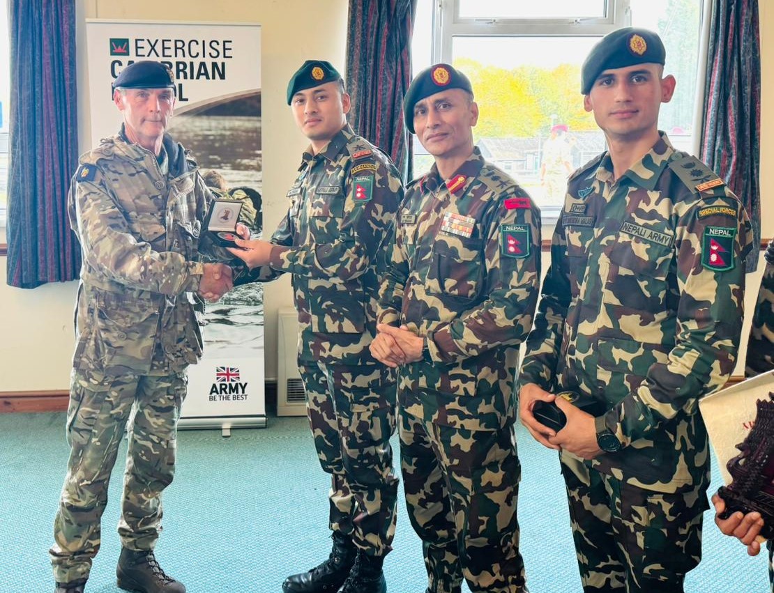 काठमाडौँ, । नेपाली सेनाले संयुक्त अधिराज्य बेलायतको वेल्स, ब्रेकनमा सञ्चालन भएको एक्सरसाइज क्याब्रिअन पट्रोल, २०२५ मा स्वर्ण पदक प्राप्त गर्न सफल भएको छ । यही असोज २३ गतेदेखि २५ गतेसम्म सञ्चालन भएको उक्त अभ्यासमा नेपाली सेनाको टोलीले सर्वोत्कृष्ट अङ्कसहित स्वर्ण पदक प्राप्त गरेको सैनिक जनसम्पर्क तथा सूचना निर्देशनालयले जनाएको छ । उक्त अभ्यासमा बेलायतसहित ३३…
