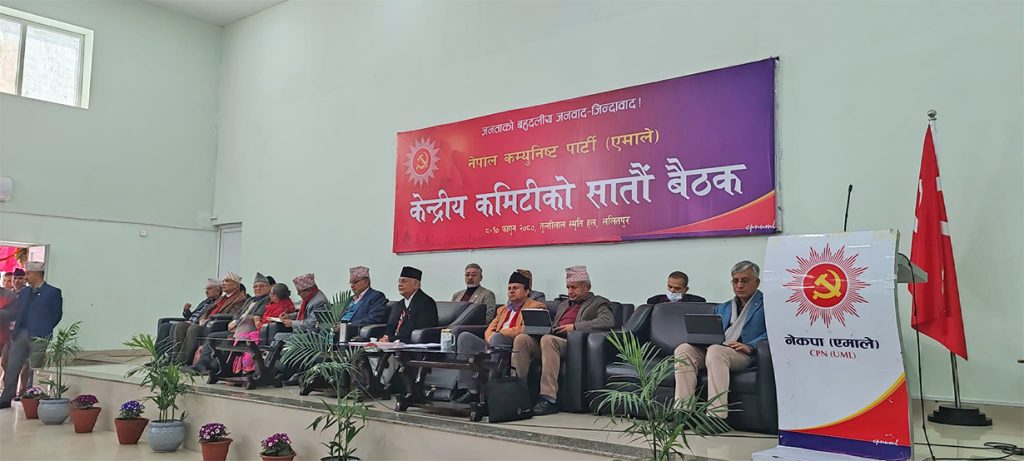 काठमाडौं । प्रमुख प्रतिपक्षी दल नेकपा एमालेको केन्द्रीय कमिटीको बैठक जारी छ । केन्द्रीय कार्यालय च्यासलमा जारी बैठक फागुन ८, ९ र १० गते तीन दिनसम्म चल्ने छ । बैठकमा पार्टी अध्यक्ष केपी शर्मा ओलीले मुलुकको समसामयिक राजनीतिक परिस्थितिबारे सम्बोधन गर्नेछन् । साथै बैठकमा समग्र पार्टीको साङ्गठनिक कामको समीक्षा तथा पार्टीको शुद्धीकरण र सुदृढीकरण कार्यक्रमको…