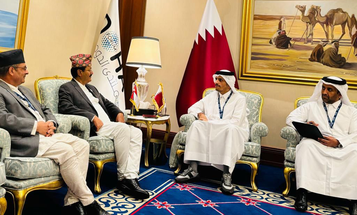 काठमाडौँ, – कतारका प्रधानमन्त्री शेख मोहम्मद बिन अब्दुल रहमान अल–थानीसँग परराष्ट्रमन्त्री एनपी साउदले शिष्टाचार भेटवार्ता गरेका छन् । कतारको राजधानी दोहामा उहाँहरुबीच आज शिष्टाचार भेटवार्ता भएको मन्त्री साउदको सचिवालयले जनाएको छ । भेटवार्ताका क्रममा परराष्ट्रमन्त्री साउदले हमासद्वारा बन्दी बनाइएका नेपाली विद्यार्थी विपिन जोशीको शीघ्र रिहाइका लागि थप सशक्त पहल गरिदिन विशेष अनुरोध गर्नुभएको मन्त्रीका स्वकीय…