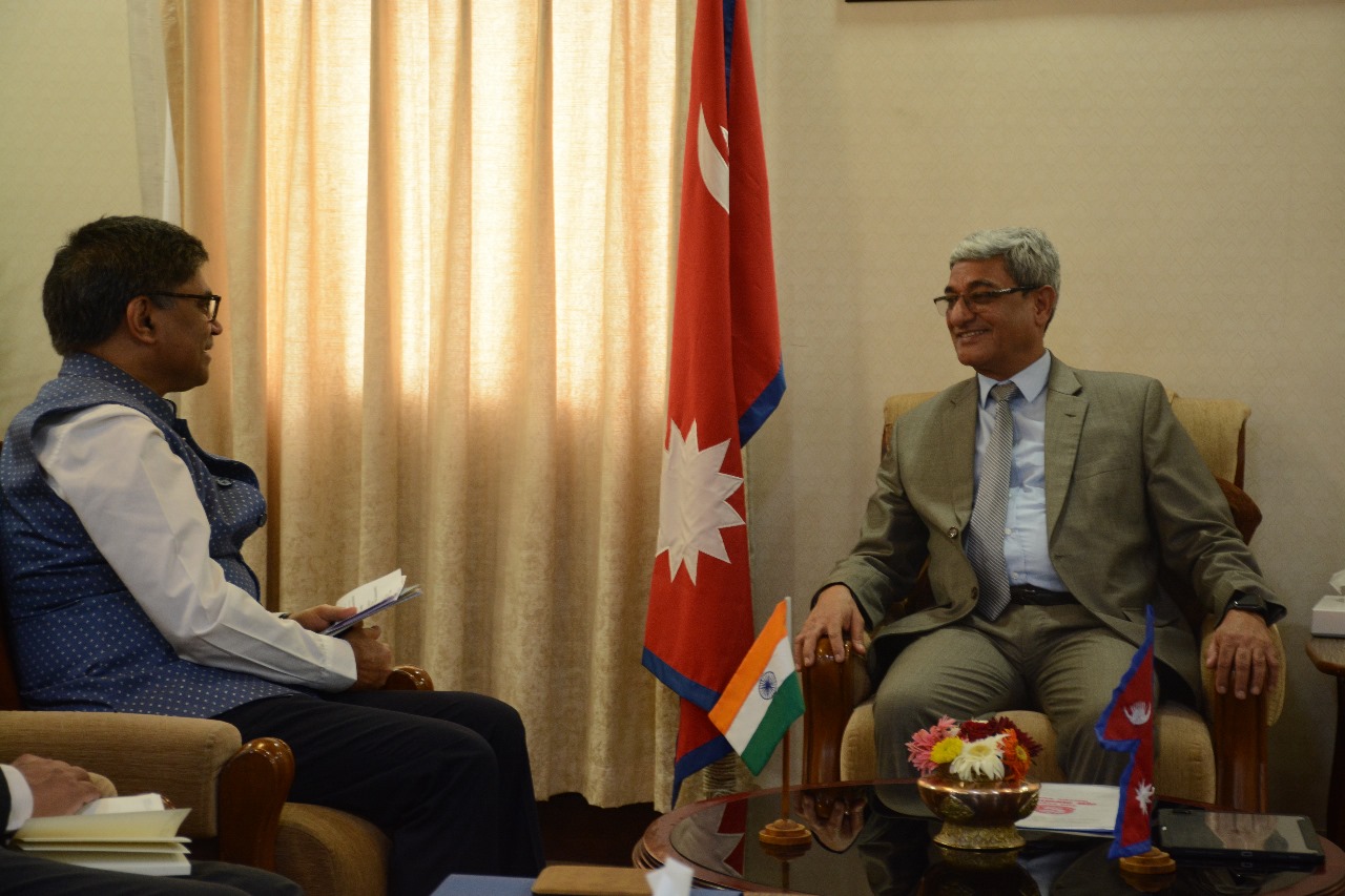 काठमाडौँ, – गृहमन्त्री रमेश लेखकसँग नेपाल भ्रमणमा रहनुभएका भारतीय विदेश सचिव विक्रम मिस्रीले शिष्टाचार भेटवार्ता गरेका छन् । सिंहदरबारस्थित गृह मन्त्रालयमा आज भएको उक्त भेटवार्तामा उनीहरुबीच द्विपक्षीय हित र चासोका विषयमा छलफल भएको गृहमन्त्रीको सचिवालयले जनाएको छ । भेटमा गृहमन्त्री लेखकले नेपाल र भारतबीच सौहार्दपूर्ण सम्बन्ध रहीआएको उल्लेख गर्दै विदेश सचिव मिस्रीको कार्यकालमा यो सम्बन्ध…