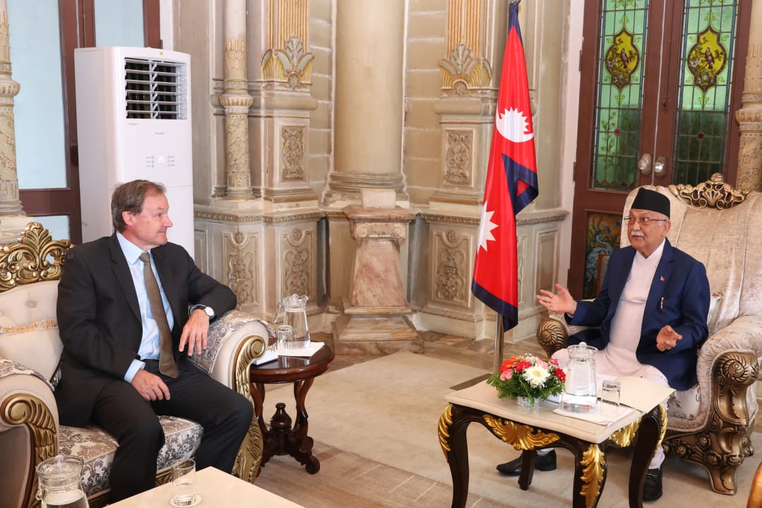 काठमाडौँ, – प्रधानमन्त्री केपी शर्मा ओलीसँग संयुक्त अधिराज्यका राजदूत रब फेनले आज शिष्टाचार भेट गरेका छन् । प्रधानमन्त्री तथा मन्त्रिपरिषद्को कार्यालयमा भएको भेटमा दुई देशबीचको आपसी सम्बन्ध र हितका विषयमा छलफल भएको थियो । प्रधानमन्त्री ओलीले नेपालको सङ्घीयता र लोकतन्त्रलाई सबल बनाउँदै सरकारले विकास, नीति निर्माणमा युवाहरुको सहभागिता वृद्धि र दिगो विकासका लक्ष्यहरुको प्राप्तिलाई प्राथमिकतामा…